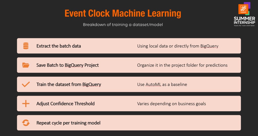 The project team consisting of my co-intern and myself engineered an end-to-end ML pipeline that extracted batch data from BigQuery, meticulously organized it into training-ready datasets, and generated predictive models using Google Cloud AutoML. Model performance was continuously fine-tuned by adjusting confidence thresholds to align percisely with critical business objectives.