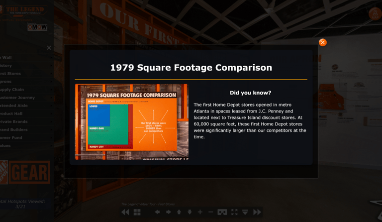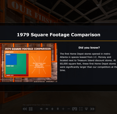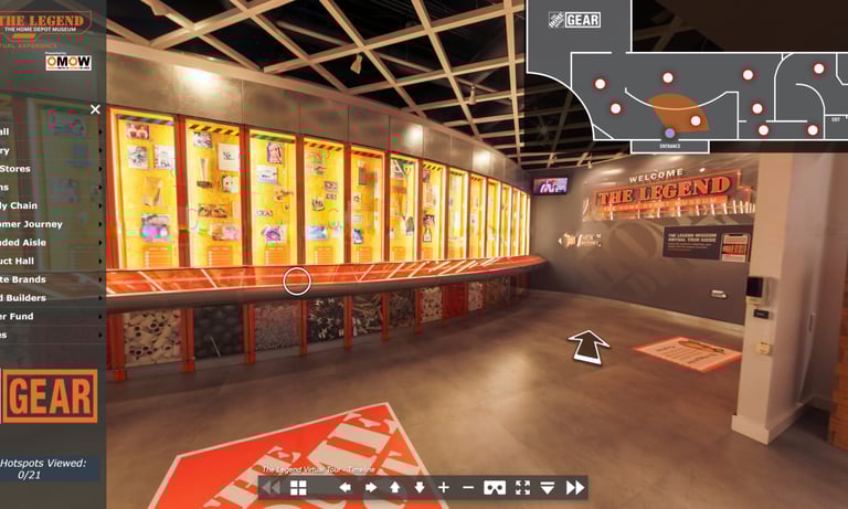 The core challenge was to create an engaging and universally accessible virtual tour that could faithfully replicate the experience of physically exploring The Legend Museum for all Home Depot associates, regardless of their location.